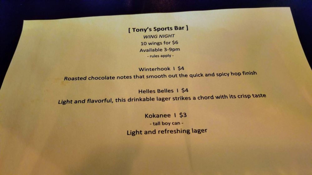 Welcome to Tony’s Sports Bar, a lively spot in Kirkland, Washington, offering a vibrant mix of sports, karaoke, and American cuisine. With a plethora of amenities such as wheelchair accessibility, free Wi-Fi, and outdoor seating, Tony’s caters to diverse preferences. The menu boasts many vegetarian options, making it inclusive for all diet preferences. Reviewers rave about the crispy French fries, mouthwatering wings, and the best chicken wings in the area. Customers appreciate the friendly staff, including bartenders Jen and Jenifer, who provide top-notch service. Whether you're looking for a fun night out with friends, a place to watch the game, or a spot for some karaoke, Tony’s Sports Bar has something for everyone. Don't miss out on their happy hour specials, full bar, and delicious smoked chicken caesar salad or wrap. Visit Tony’s Sports Bar for a memorable dining experience that goes beyond just great food.